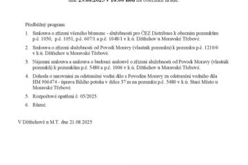 Schůze Zastupitelstva obce Dětřichov u Moravské Třebové se uskuteční dne 29.08.2025 v 18:00 hod na obecním úřadě. Pozvánka na zasedání OZ-2025-08-29