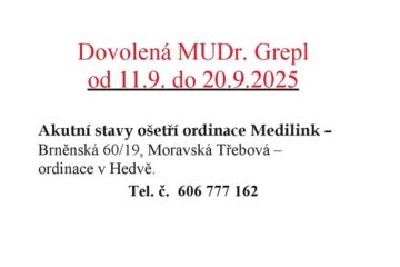 Změna termínu dovolené MUDr. Grepla v červenci 2025. MUDr.Grepl-červenec 2025