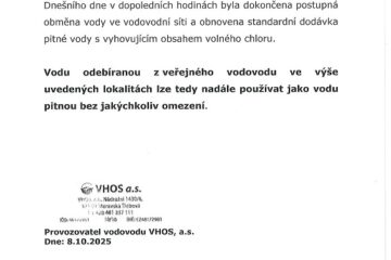 Informace provozovatele vodovodu o dokončení obměny vody ve vodovodní síti a o obnovení standardní dodávky pitné vody. 20251008122042390