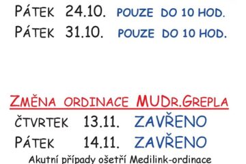 Změna ordinace MUDr. Grepla v říjnu a listopadu 2025. MUDr.Grepl-ordinace říjen+listopad 2025