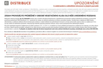Společnost ČEZ Distribuce, a. s., jakožto provozovatel distribuční soustavy, vyzývá vlastníky a uživatele nemovitostí, přes něž vede nadzemní elektrické vedení nebo na něž zasahuje ochranné pásmo, k pravidelnému odstraňování a oklešťování stromoví a jiných porostů ohrožujících bezpečné a spolehlivé provozování Číst více…