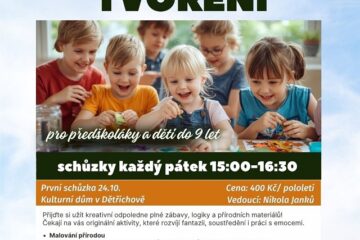 DDM Maják Moravská Třebová pořádá pro předškoláky a pro děti do 9 let zájmový kroužek Zábavné tvoření. První schůzka se uskuteční v KD dne 24.10.2025. Děti můžeze přihlásit na stránkách www.ddm-mt.cz. zábavné tvoření